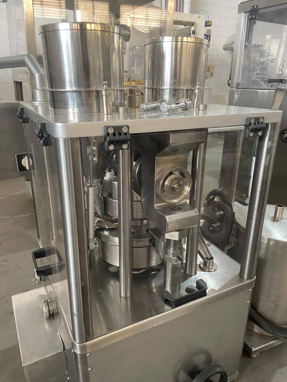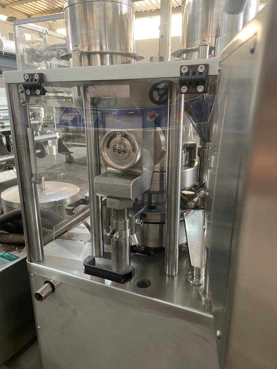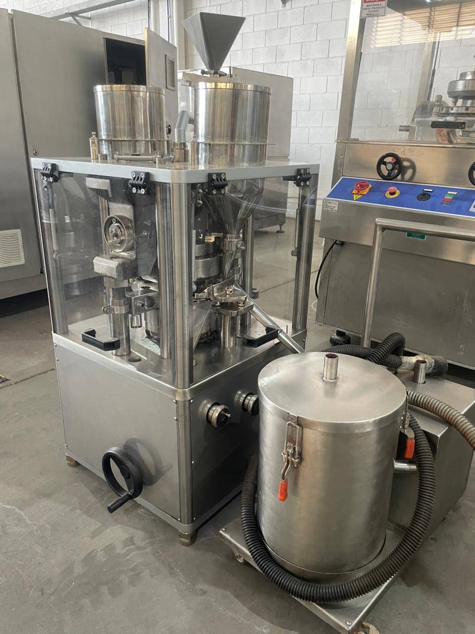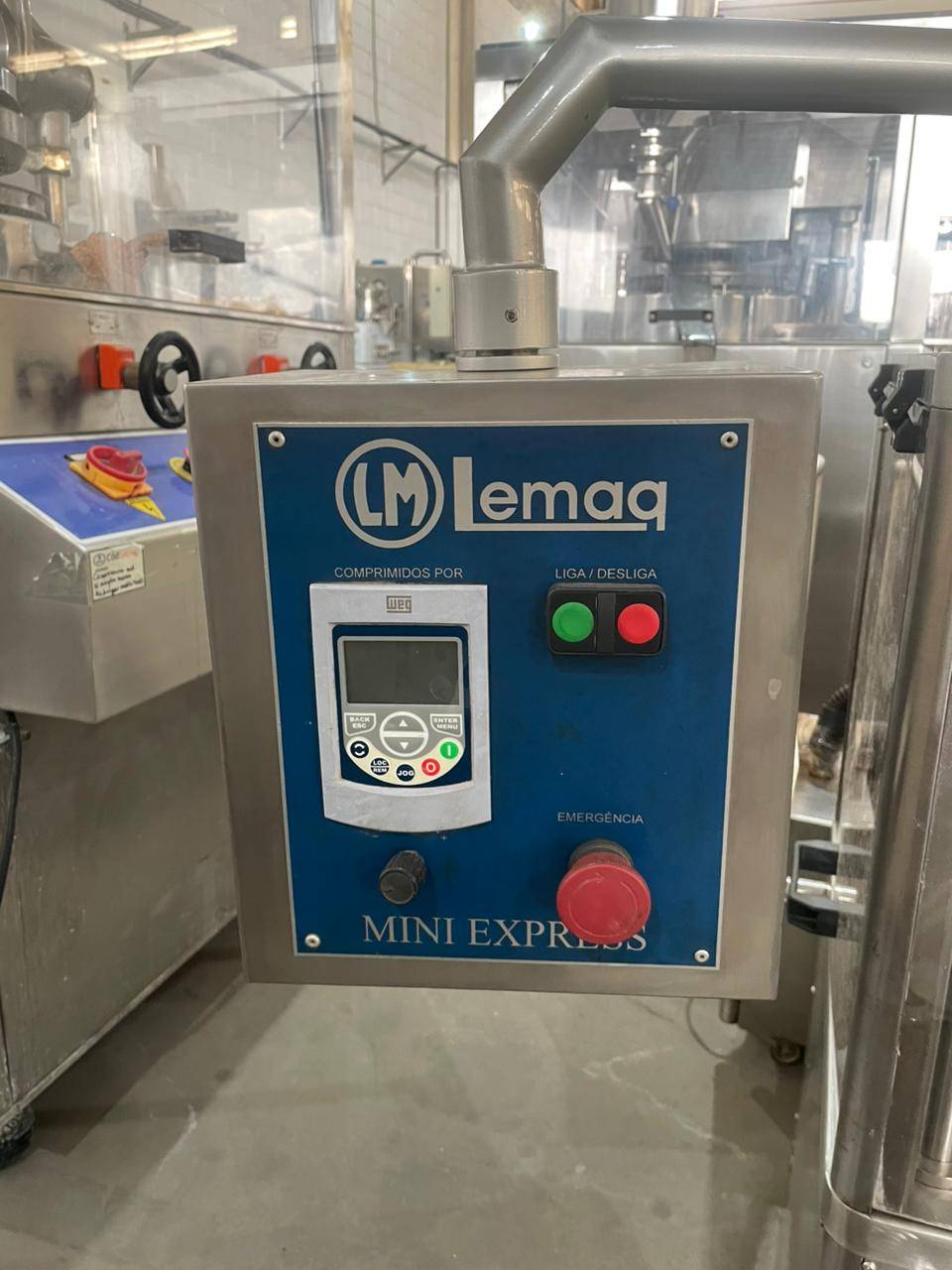Compressora automática Tipo : Rotativa Punções: 11 punções Marca: Lemaq Modelo : Tipo B Caracteristicas: com dupla camada , com inversor de frequencia , com aspirador de pó , 220v , motor 3cv trifasico Produção :até 50.000 ciclos / hora Compressora automatica rotativa , com 11 punções , marca Lemaq modelo tipo B, com dupla camada , com inversor de frequencia , com aspirador de pó , 220v , motor 3cv trifasico produção até 50.000 ciclos / hora .A compressora rotativa é uma máquina para industria e serve para comprimir materiais em drágeas. Utilizam força de compressão para oferecer um controle na dosagem dos pós e da espessura dos comprimidos.