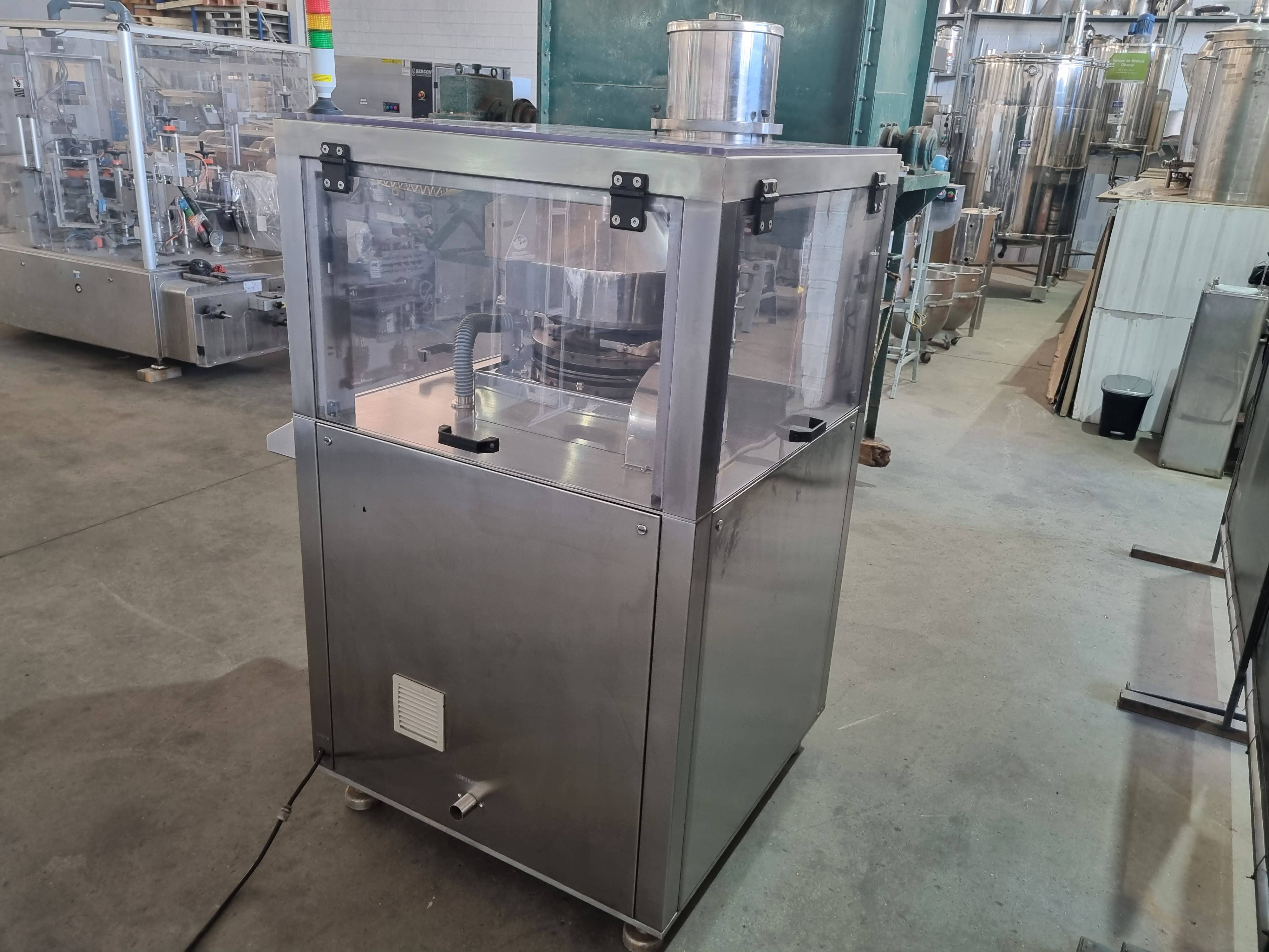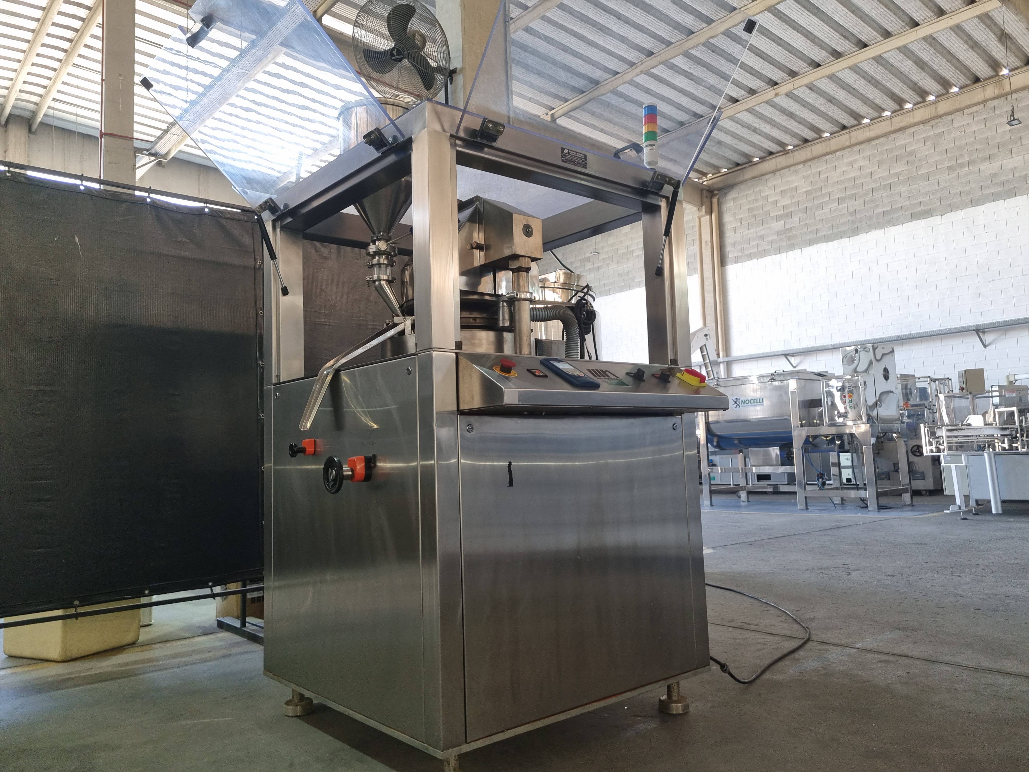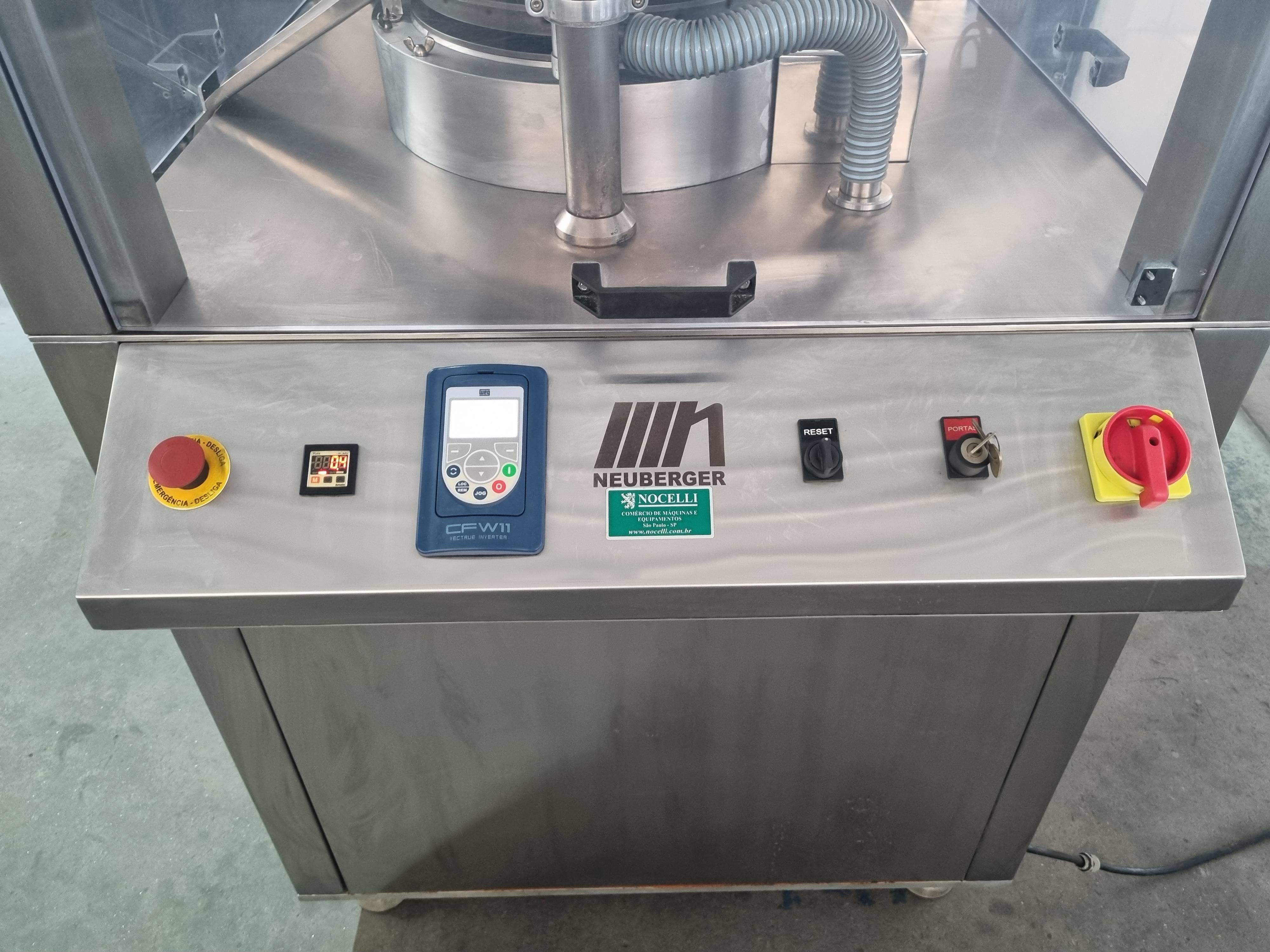 Compressora automática Tipo : Rotativa Punções: 20 Marca: Neuberguer Modelo : MN-20F – tipo D Caracteristicas: com inversor de frequência , 220v trifásico , encabinada . ano 2022 , com aspirador de pó marca Neuberguer modelo ASP200 max Produção :até 900 ciclos / min Compressora automatica rotativa , com 20 punções , marca Neuberguer modelo MN-20F - Tipo D , com inversor de frequência , 220v trifásico , encabinada . ano 2022, com aspirador de pó marca Neuberguer modelo ASP200 max , produção até 900 ciclos / min .A compressora rotativa é uma máquina para industria e serve para comprimir materiais em drágeas. Utilizam força de compressão para oferecer um controle na dosagem dos pós e da espessura dos comprimidos.
