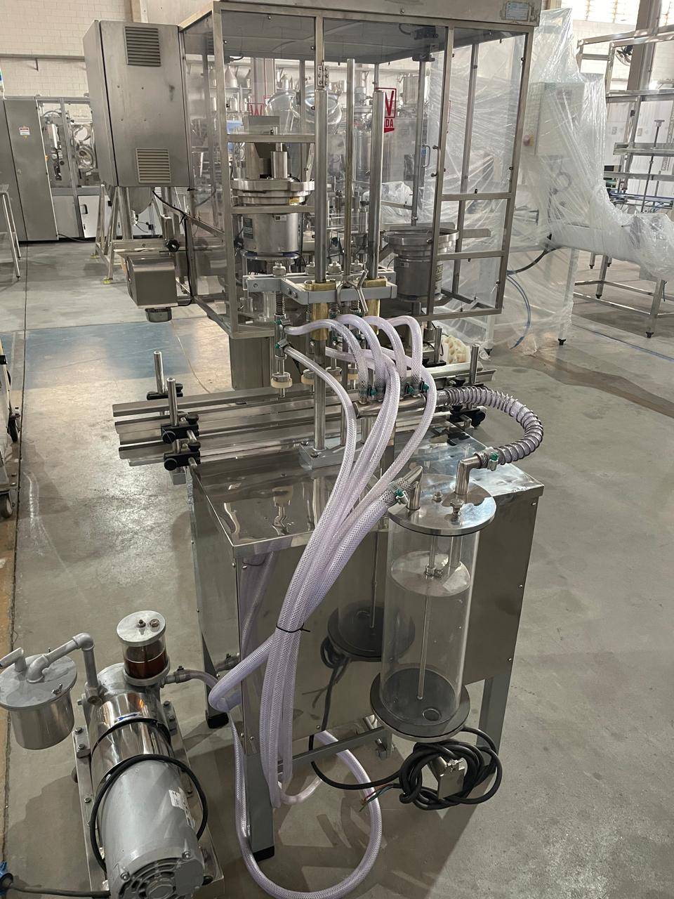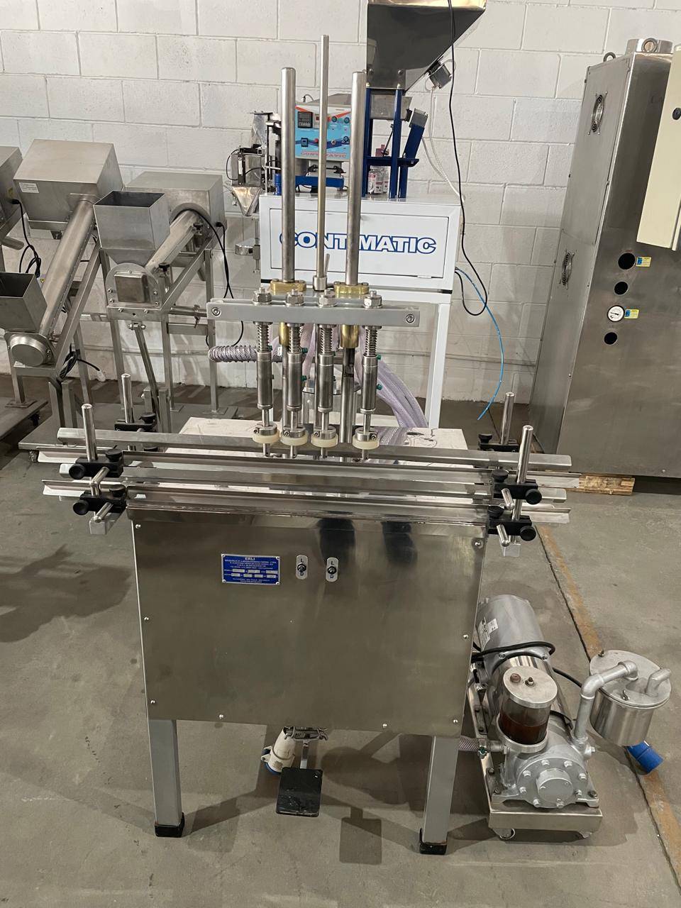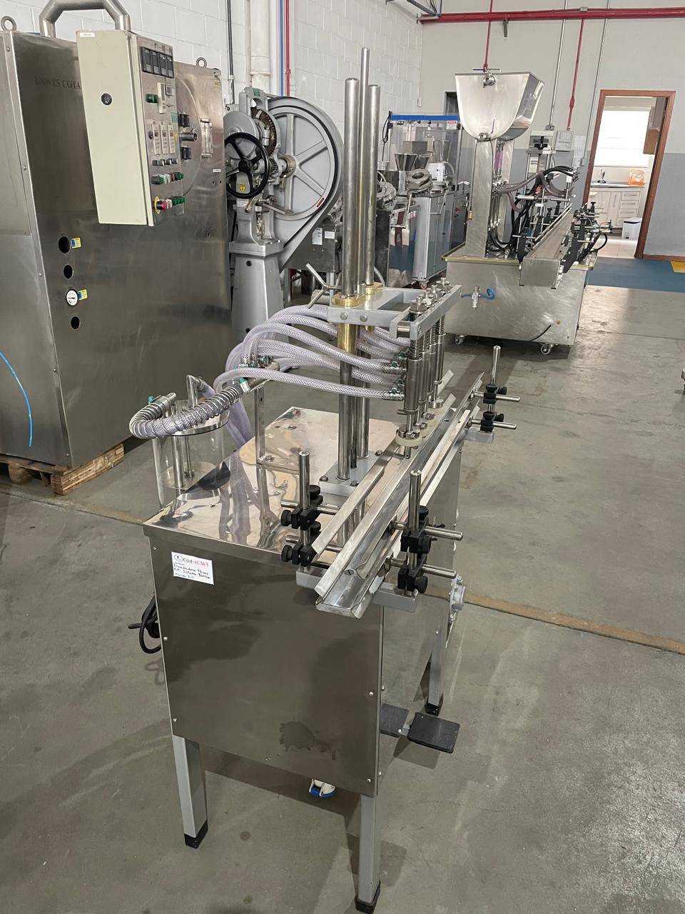 Envasadora semi automatica com 4 bicos para produtos liquidos sistema a bomba . Produção até 2.000 frascos/h