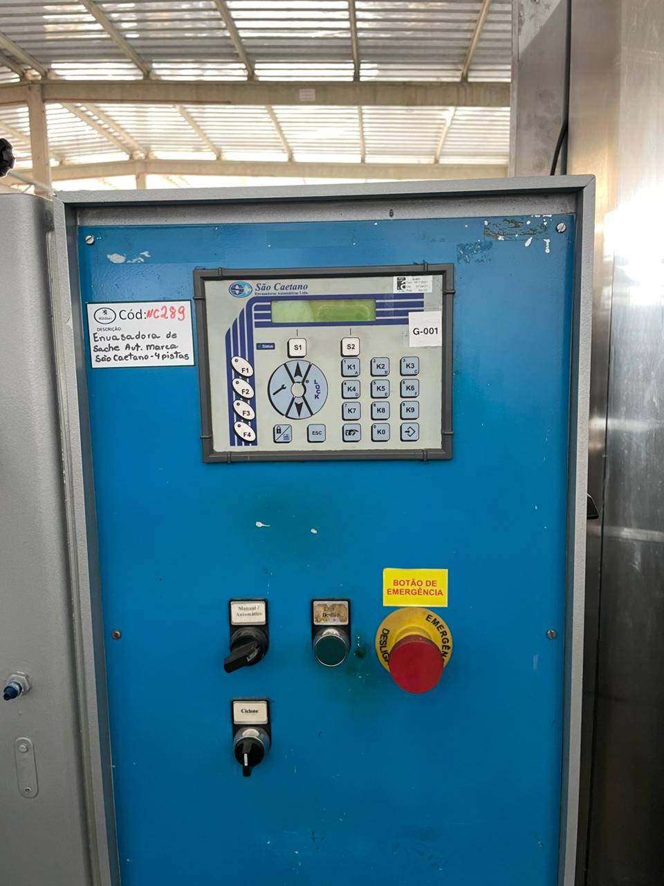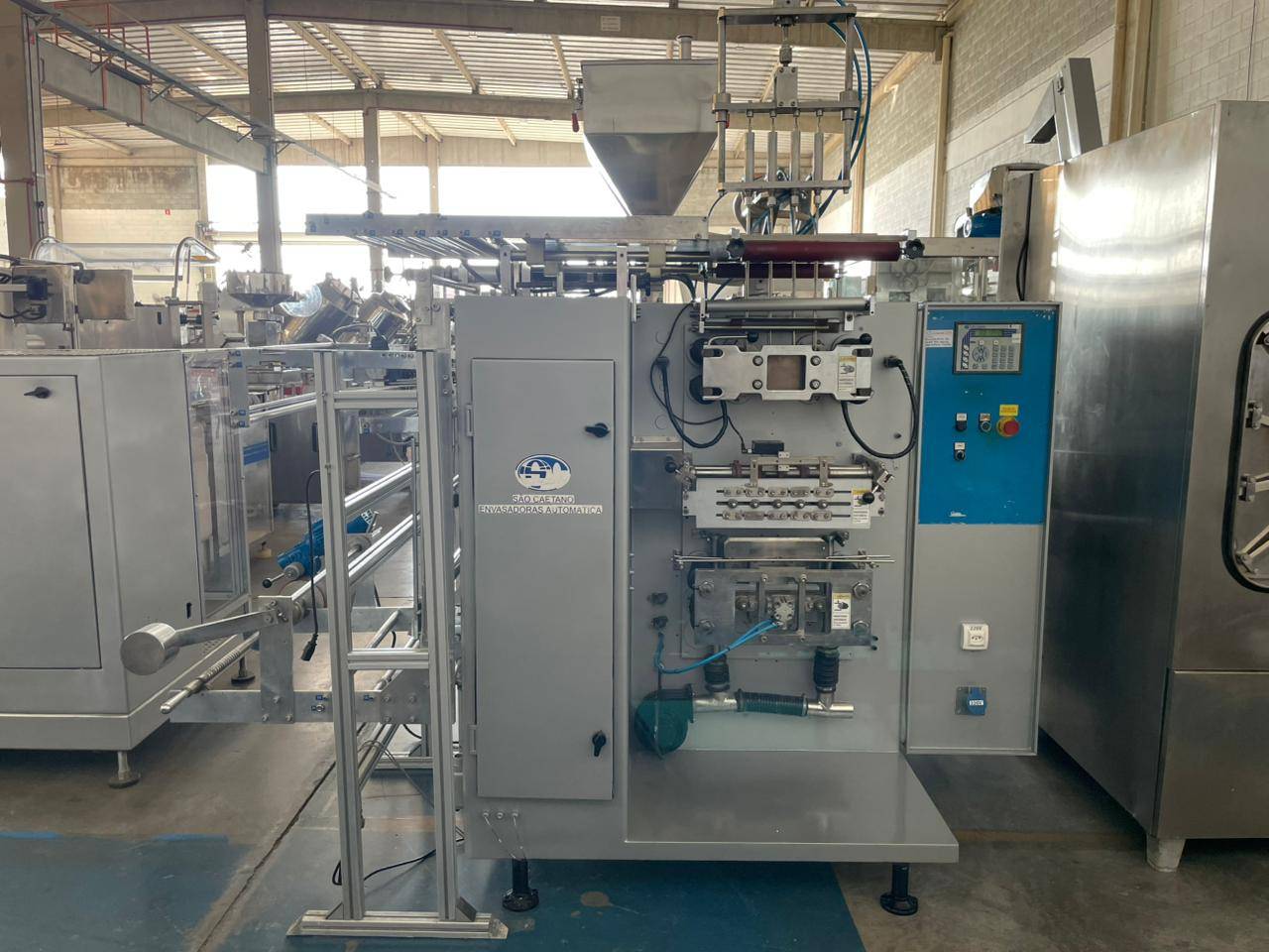 Envasadora automatica Tipo: Sache Produto: liquido Capacidade: até 15g Pista : 4 pistas Marca: São Caetano Pordução : até 240 saches/min Caracteristicas : Sistema de tracionamento do filme por servo motor Envasadora de Sache automática marca São Caetano - para liquido com 4 pistas de ate 15g , sistema de tracionamento do filme por servo motor produção de ate 240 saches /min
