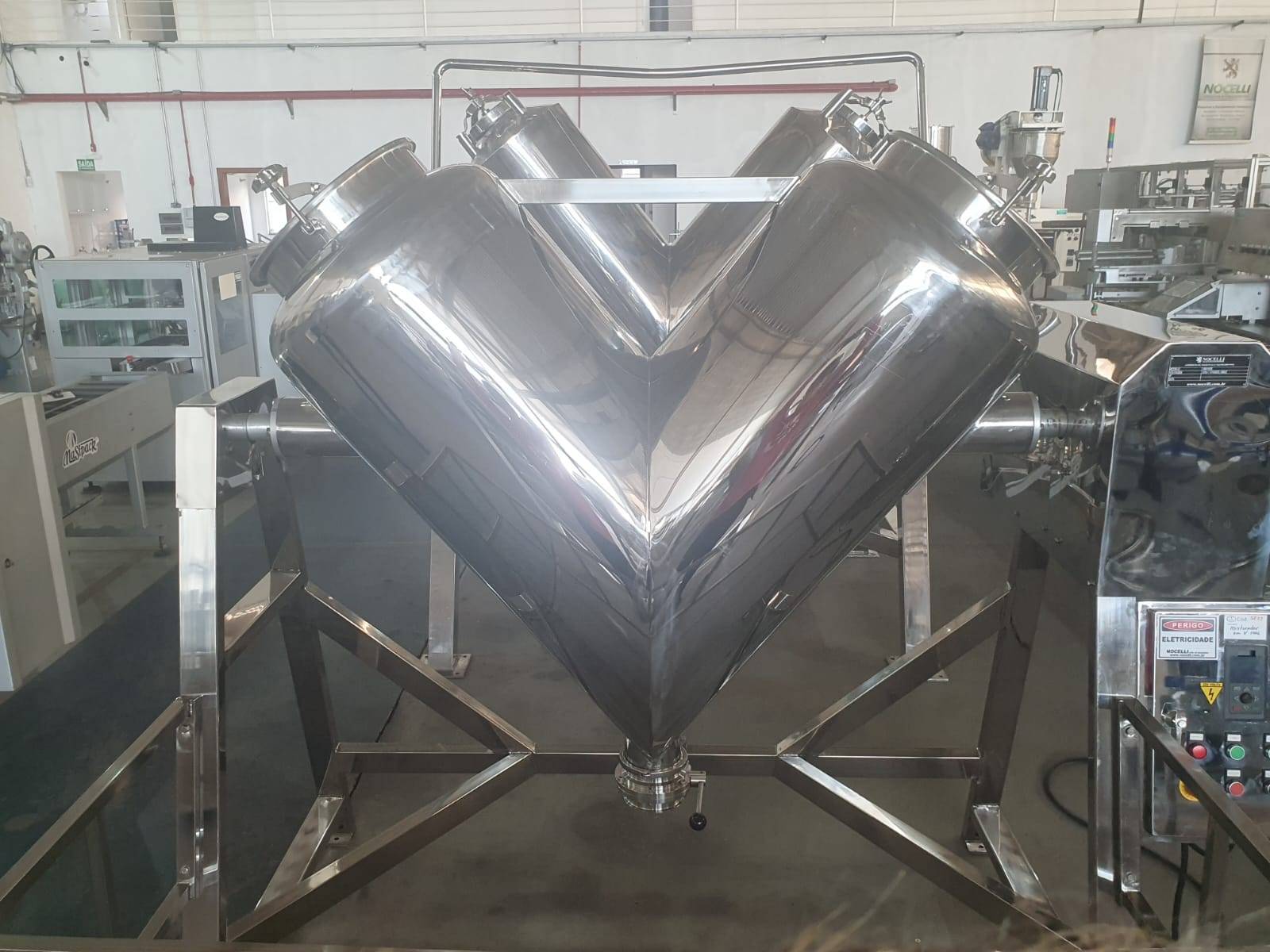 Misturador de pó em aço inox 316 (contato com o produto) Tipo: em V Produto: Pó e Granulado Capacidade: 500L Motor: 220V / 380V / 60Hz / 4 CV / Trifásico O Misturador em V é utilizado para misturar grãos de material seco nas áreas Farmacêutica, Química, Alimentícia e Metalúrgica. Modelo Capacidade Potência NMV200 200 L 1,5 CV NMV500 500 L 4 CV