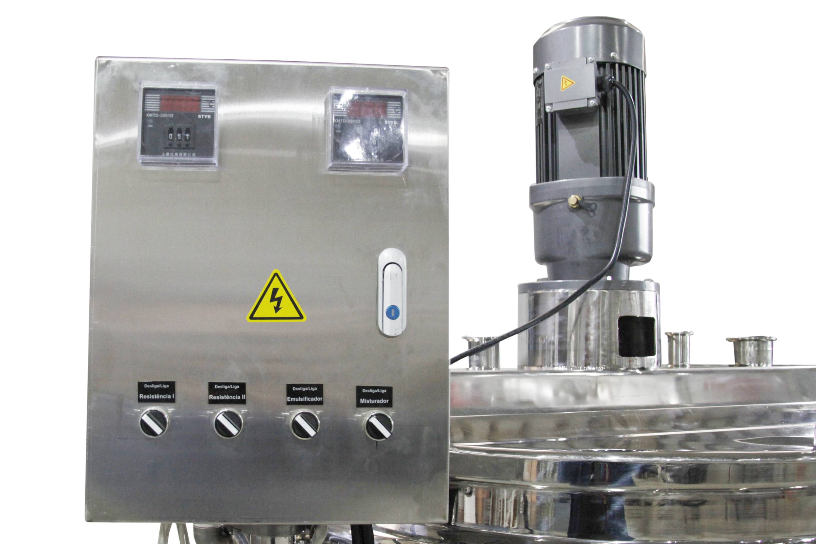 Reatores homogeneizador 250 Litros Em aço Inox 304 / 316 Camisa dupla com resistências em aço Inox. Motores : 220/380 Trifásico Turbo Homogeneizador: 4 Cv / 3500 Rpm Misturador: 2 Cv / 36 Rpm Espessura chapa das Camisas: Externas : 2mm Internas: 3mm Caracteristicas : com inversor de frequencia , com spray ball, para limpeza e higienização interna quando necessário. Reator em inox com capacidade de 250 litros,com inversor de frequencia , turbo na parte inferior, motor 4cv, misturador lento na parte superior de 2cv com aquecimento elétrico e tensão de 220 volts trifásico. Capacidades: Modelo Capacidade Potência Turbo Potência Misturador NTR250 250L 4 Cv / 3500 Rpm 2 Cv / 36 Rpm NTR500 500L 5 Cv / 3500 Rpm 3 Cv / 36 Rpm NTR1000 1000L 10 Cv / 3500 Rpm 5 Cv / 36 Rpm